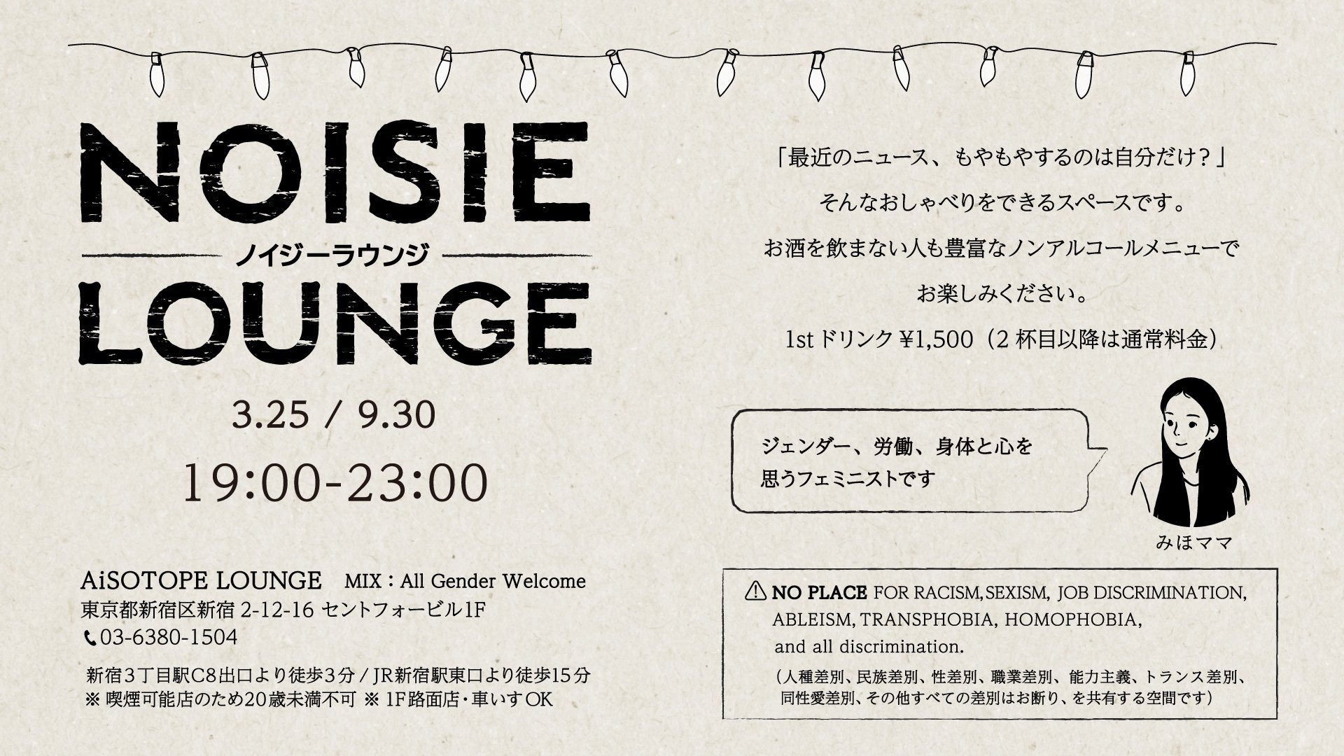 [FEE] 1st DRINK ¥1,500(2杯目以降は通常料金)