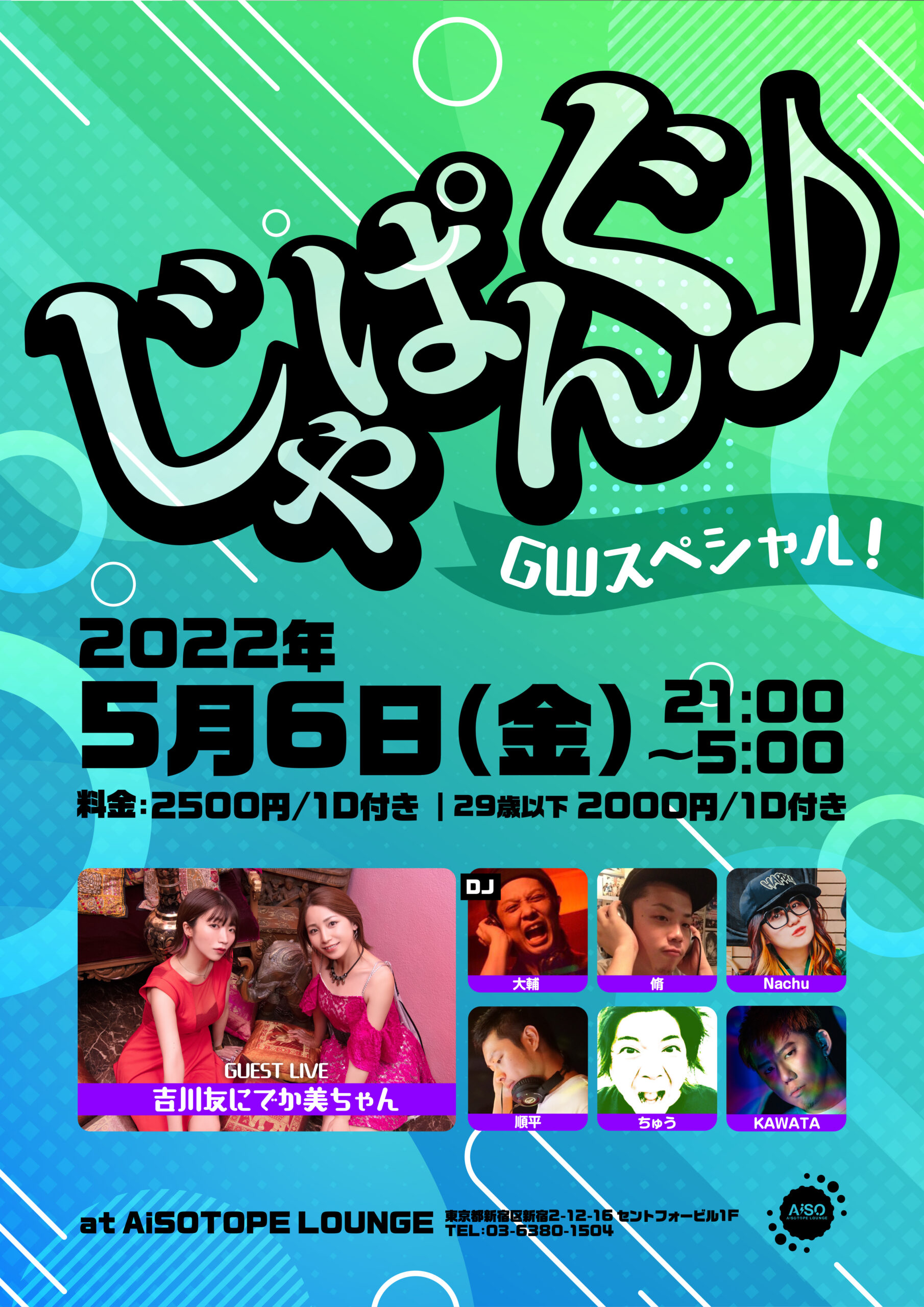 二丁目の金曜の夜をふたたび盛り上がらせるために、 じゃぱんぐ♪がAiSOTOPE LOUNGEで約半年ぶりの開催が決定!