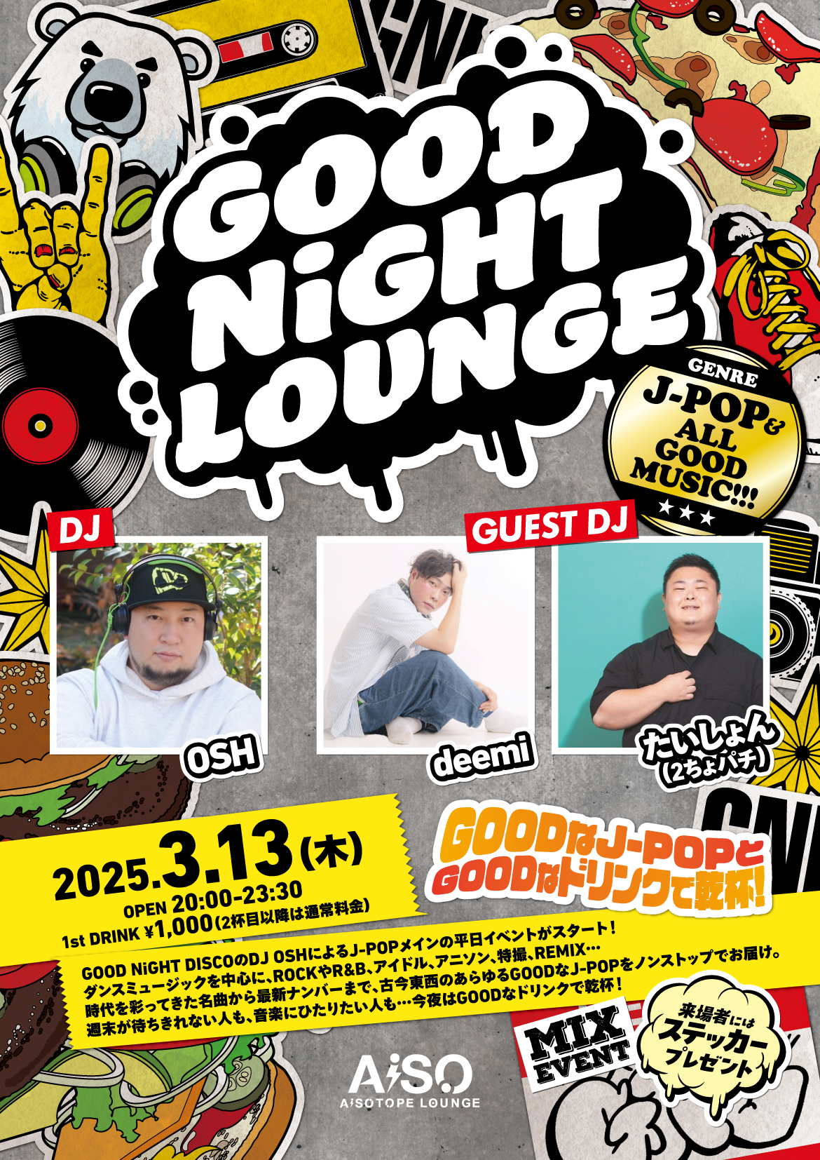 つんパラ。/GOOD NiGHT DISCOのDJ OSHによるJ-POPメインの平日イベントがスタート!