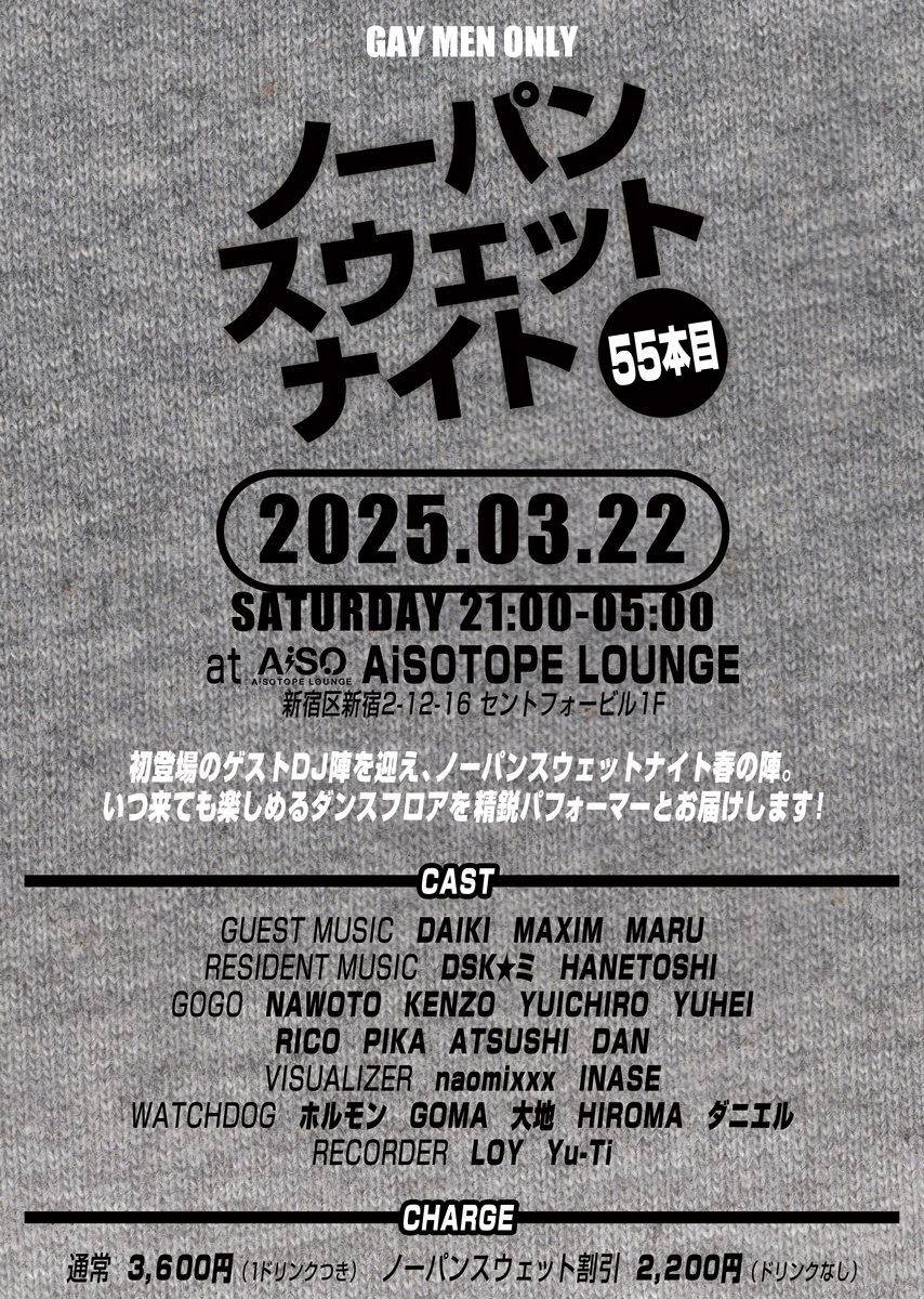 ・「ノーパンスウェット」でご来場いただくと、入場受付時に料金が割引されます。