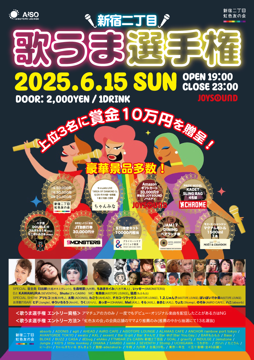 新宿二丁目虹色友の会 加盟店から推薦された、圧倒的な実力を持つ歌うま猛者13名が集結!