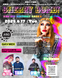 女性ボーカルROCKにスポットを当てて全面的にフューチャーしたDrag Queen & DJ Party「チェリーボム!」
