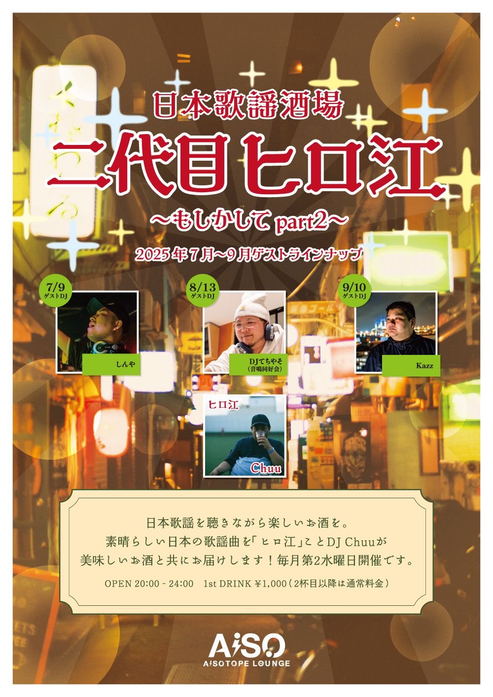 “ヒロ江”ことDJ Chuuが美味しいお酒と共にどんと!お届け致します。