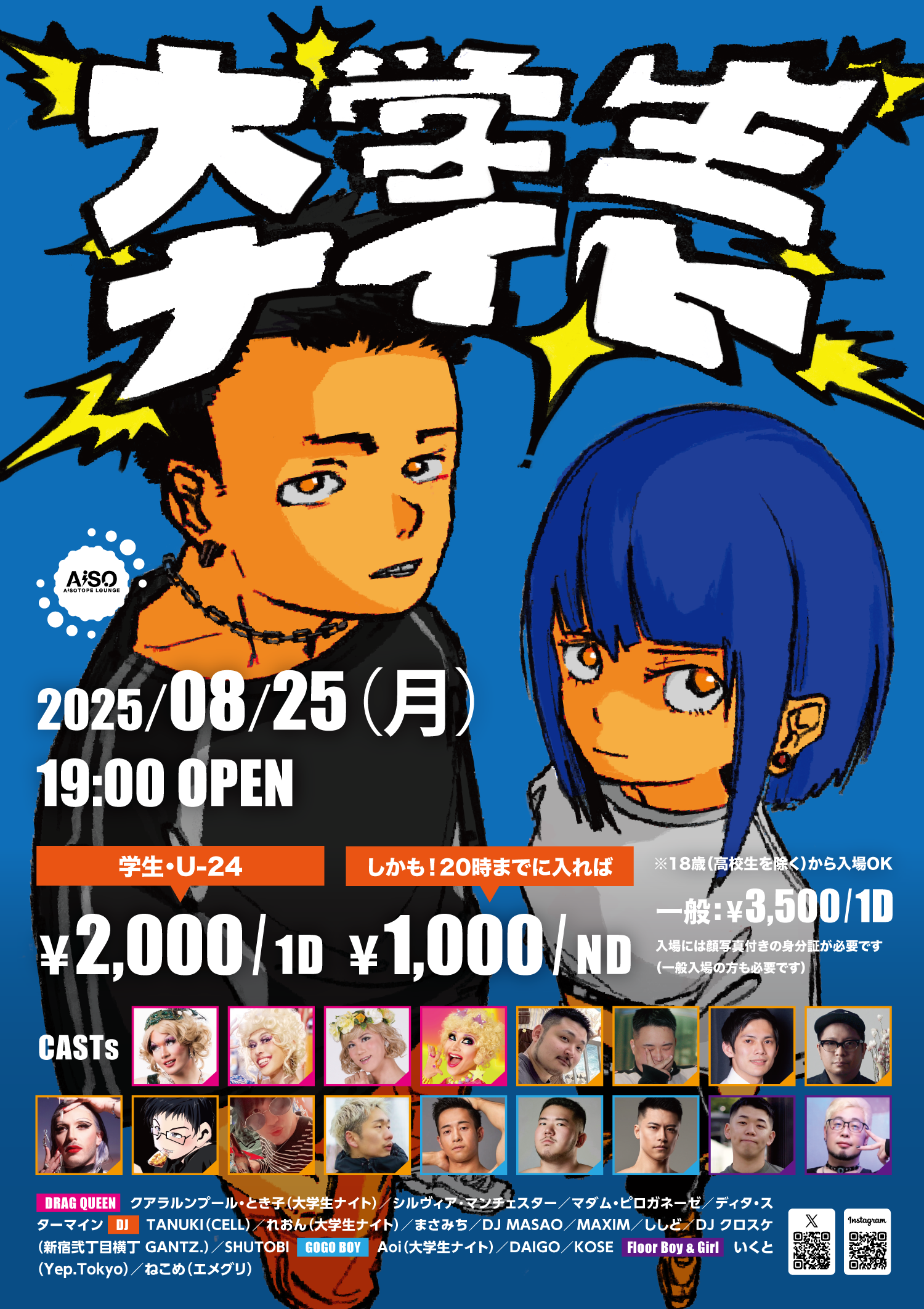 DJ: TANUKI(CELL), れおん(大学生ナイト), まさみち, DJ MASAO, MAXIM, ししど, DJ クロスケ(新宿弐丁目横丁 GANTZ.), SHUTOBI