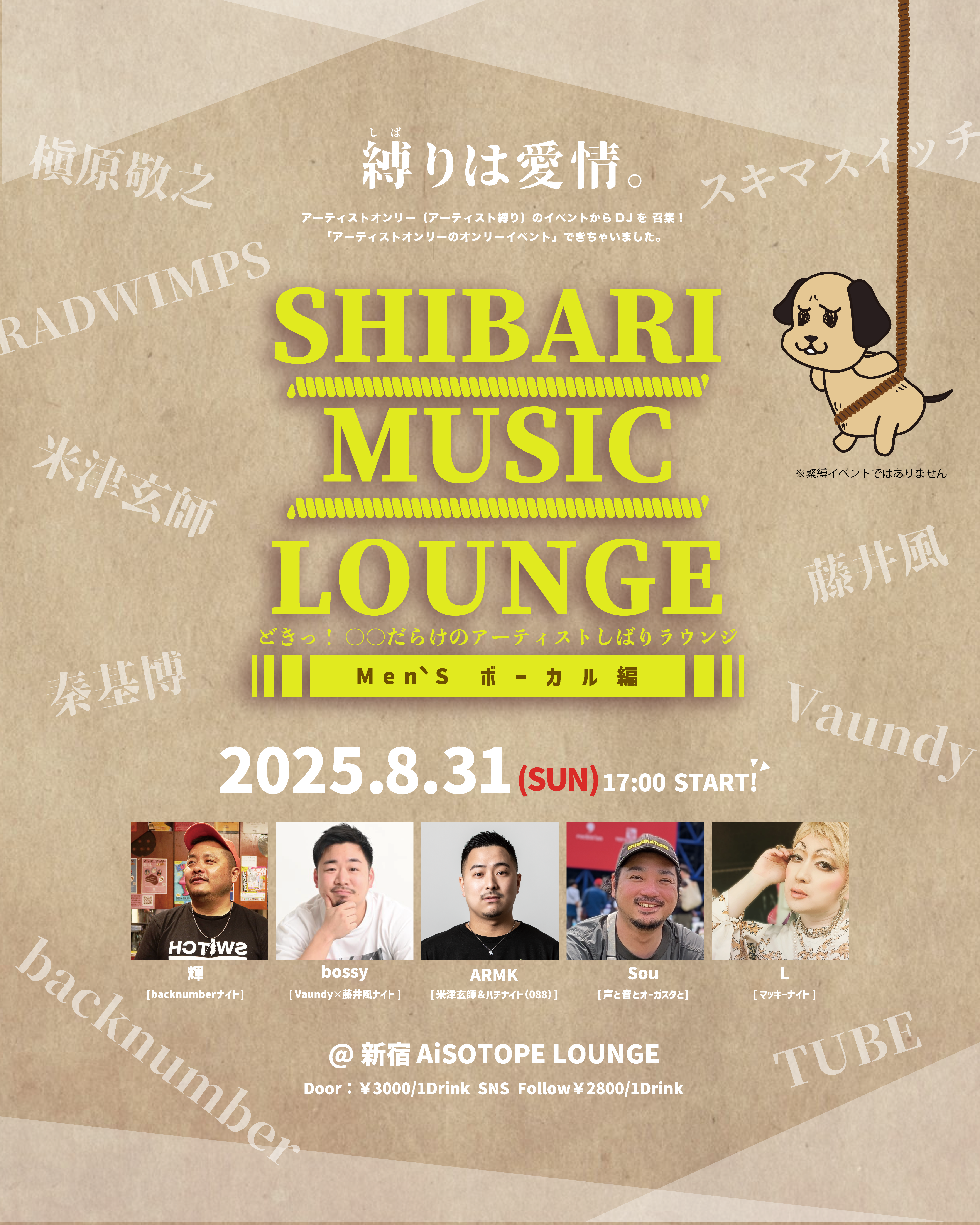 新宿を賑わせるワンアーティストに縛った濃厚な「オンリーイベント」の中から今回は「Men`s ボーカリスト縛り」のイベントより、DJ陣にお任せしました!