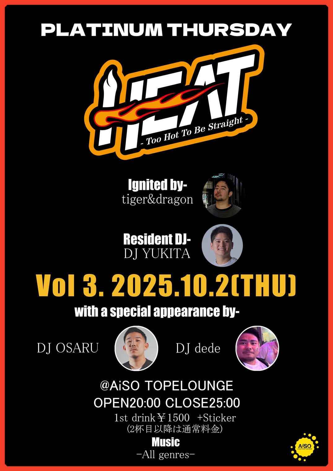 1st DRINK ¥1,500(2杯目以降は通常料金)+Sticker