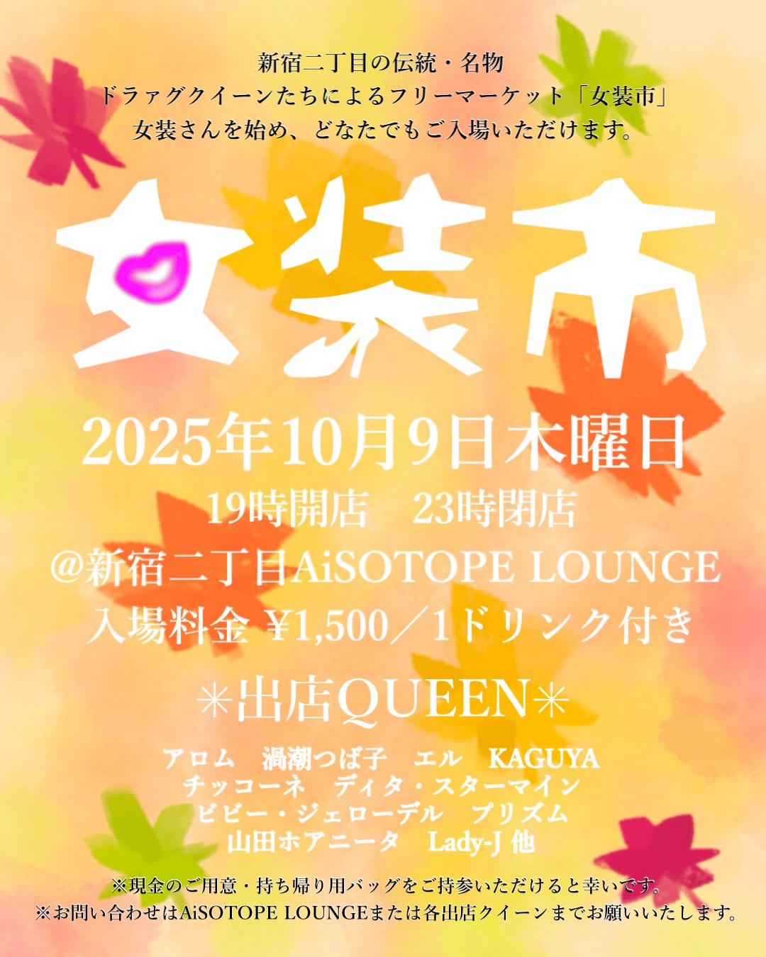 新宿二丁目の伝統名物、ドラァグクイーンによるフリーマーケット「女装市」がこの秋も開催!