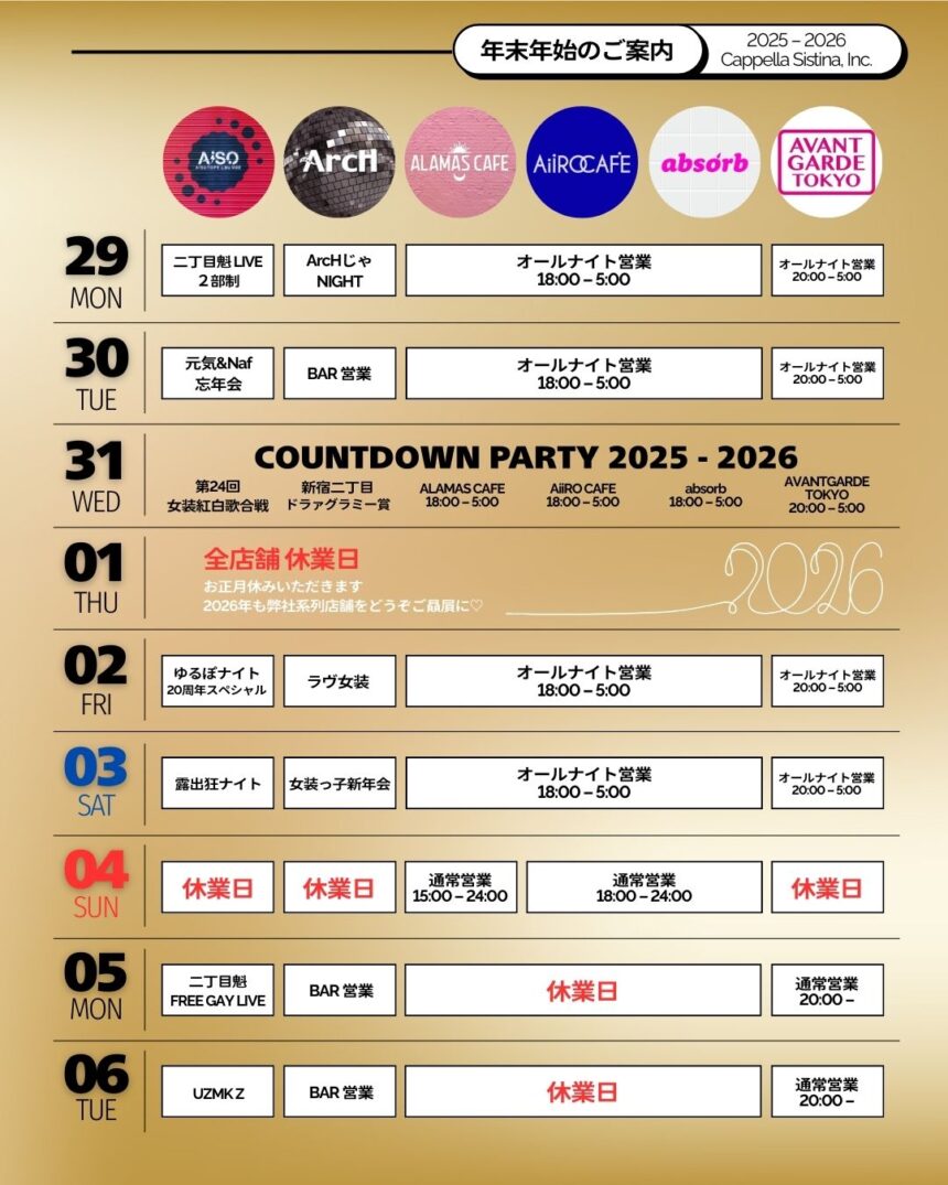 年末年始も、新宿二丁目の夜を彩るエンターテインメントを全力でお届けします!
